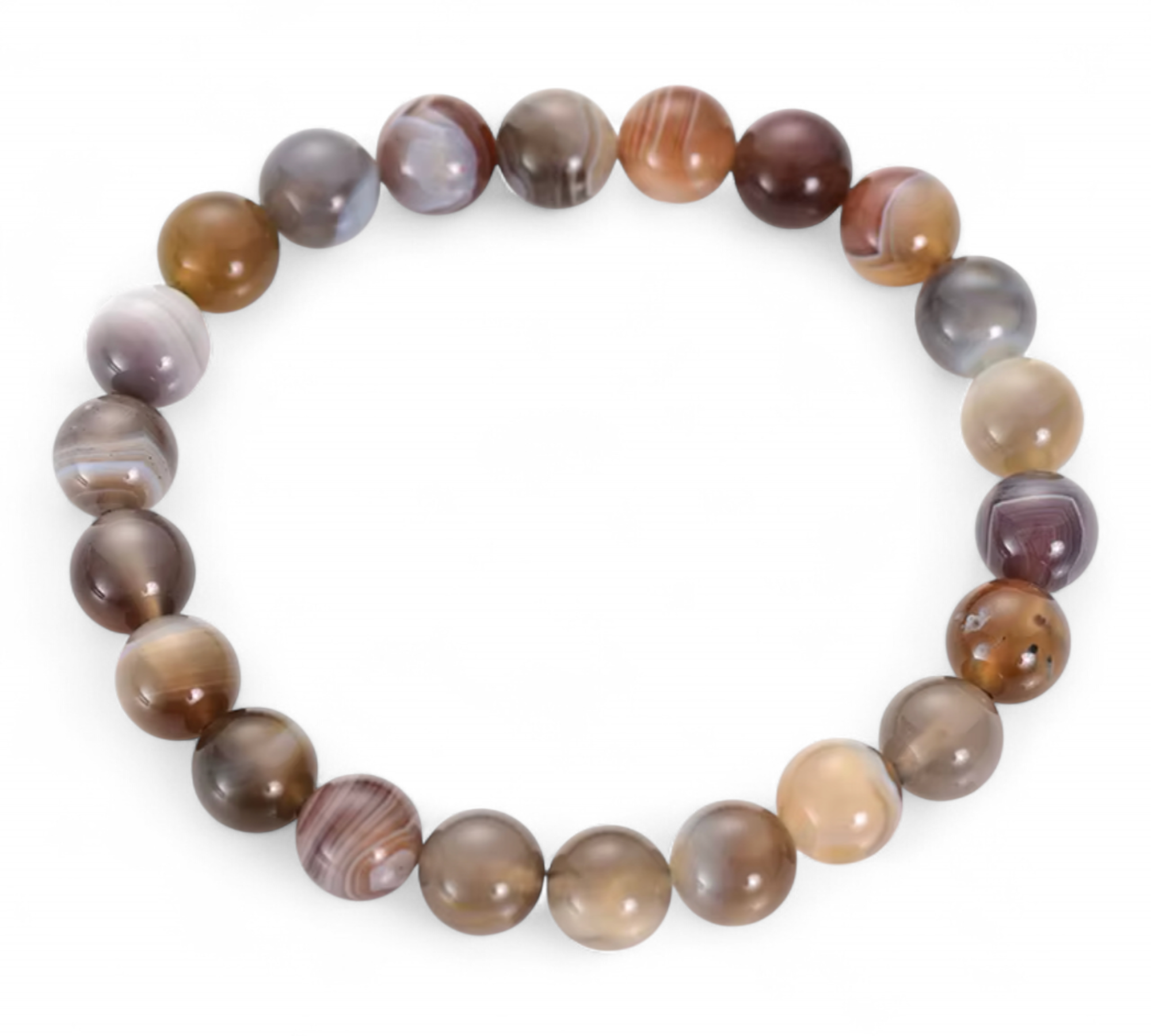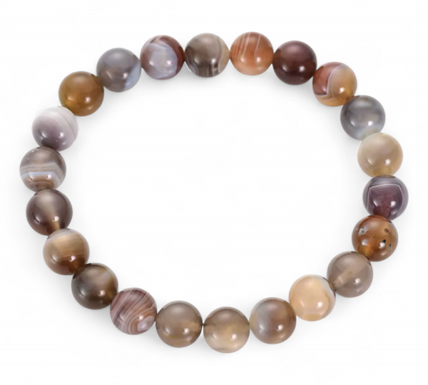 A Botswana achát az egyik legfinomabb energiájú achátféle, amely lenyűgöző, szalagos mintázatával és lágy, természetes árnyalataival nemcsak gyönyörködtet, hanem érzelmi támogatást is nyújt. A 6 mm-es gyöngyökből készült karkötő diszkrét eleganciája bármilyen stílushoz illeszkedik.