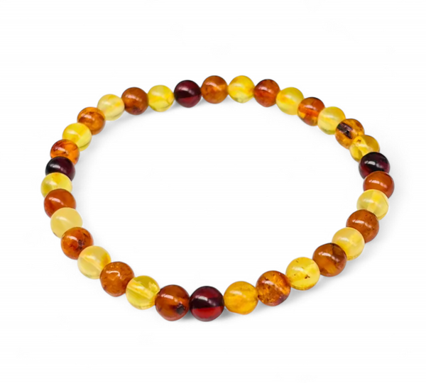 Ez a különleges, matt felületű, vegyes árnyalatú borostyán karkötő a természet időtlen szépségét hozza el a csuklódra. A mézszínű, karamell, sötétbarna és világos árnyalatú 5–6 mm-es gyöngyökből álló darab kifinomult, mégis élettel teli megjelenést biztosít – ráadásul L-es méretben kényelmes viseletet is nyújt.