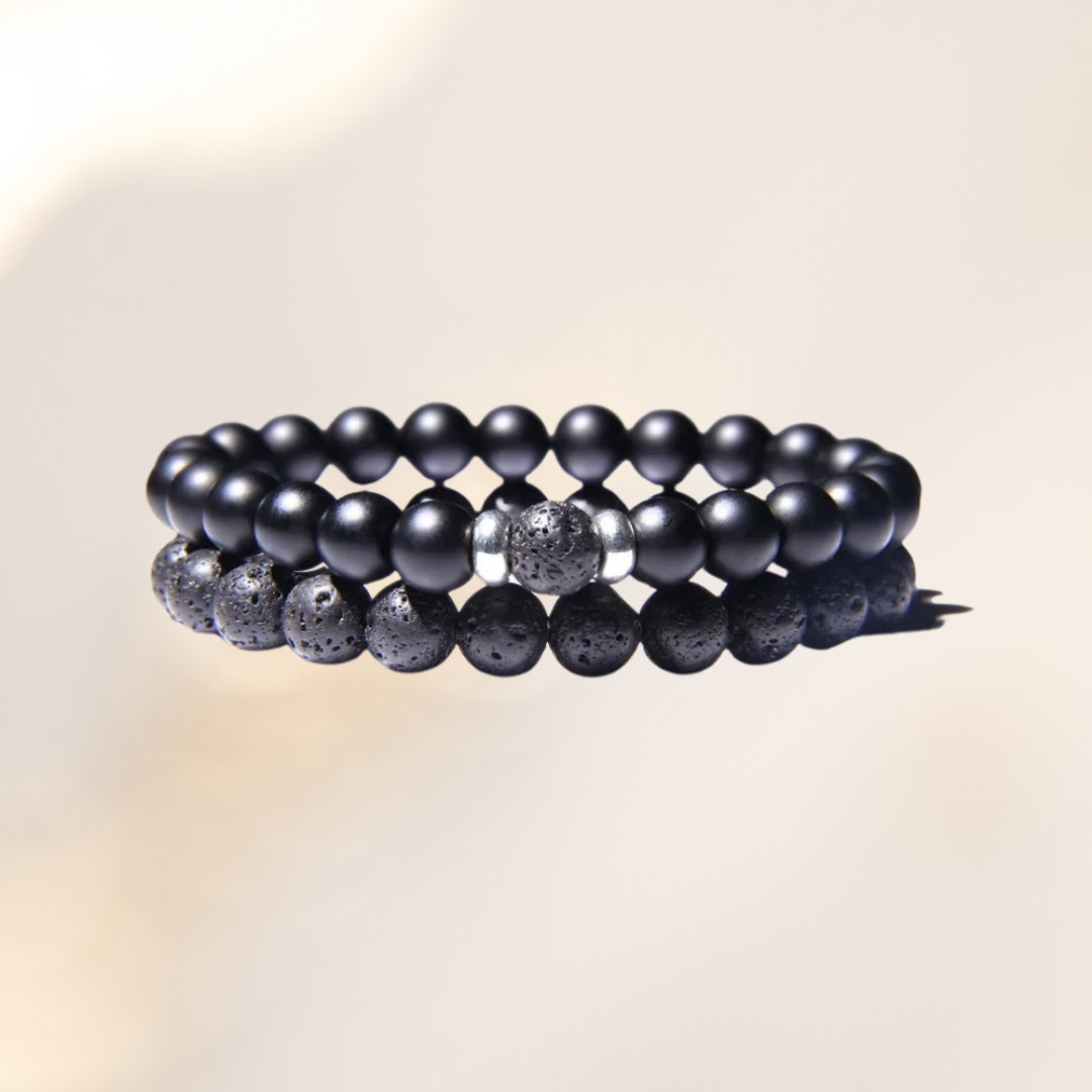 Fedezd fel az erő és stabilitás tökéletes kombinációját az Onix és Lávakő Páros Karkötővel! Ez a páros karkötő a mély fekete onix és a földes tónusú lávakő elegáns keverékét kínálja, amely nemcsak stílusos kiegészítő, hanem számos jótékony hatást is nyújt.