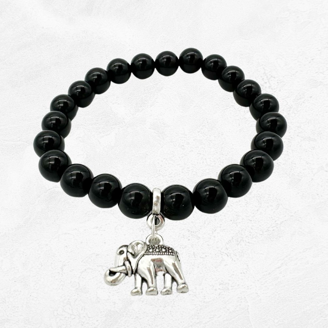 Az elefánt medál egyedi jelentéssel bír: az elefánt a bölcsesség, a szerencse és a hosszú élet szimbóluma. Ez a karkötő egyesíti az ónix védelmező energiát és az elefánt által hozott pozitív rezgéseket, hogy támogassa viselőjét az utazásai során.