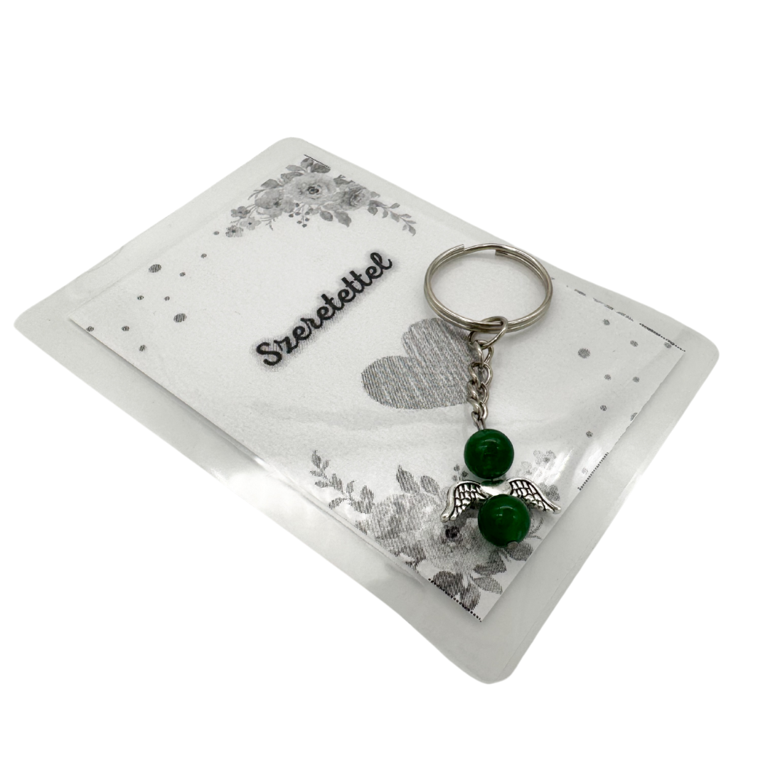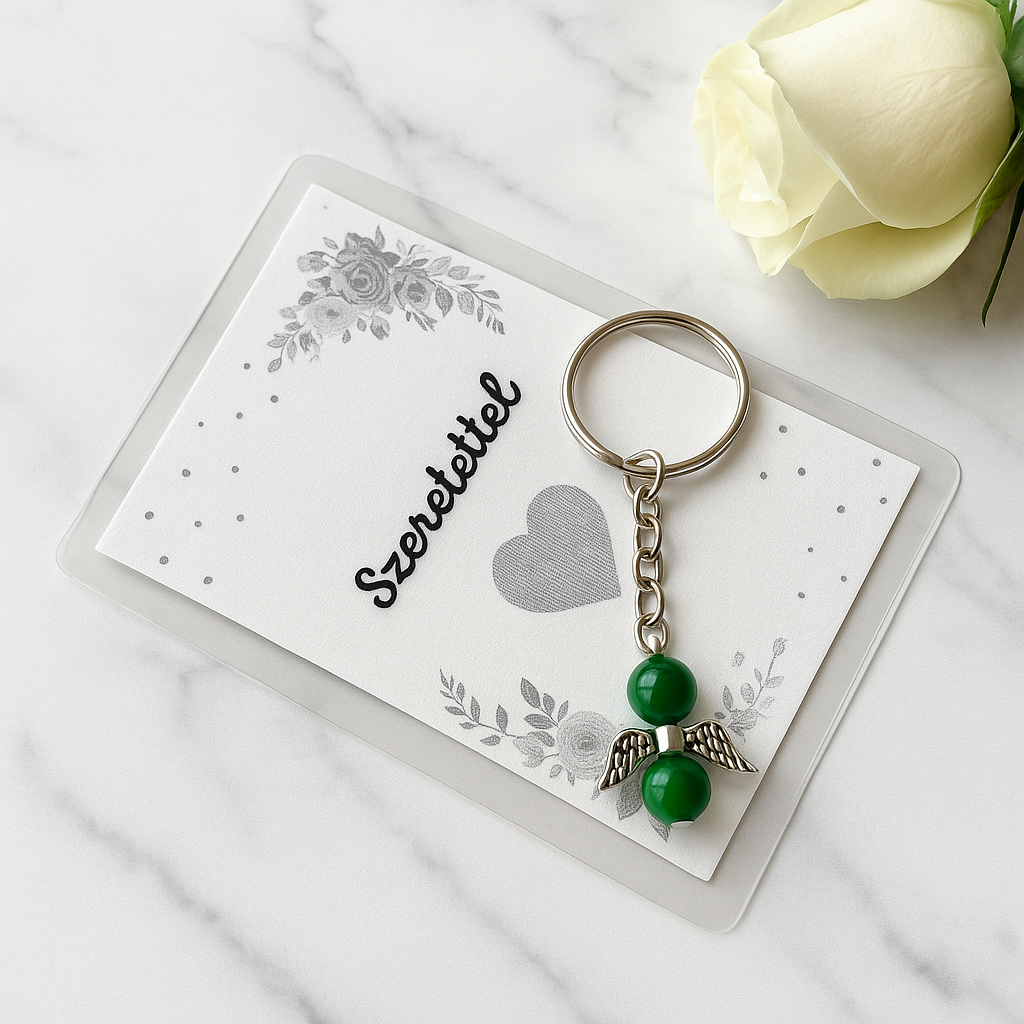 Szeretettel! Ajándékkártya & Zöld Jáde Angyal Kulcstartó Csomag