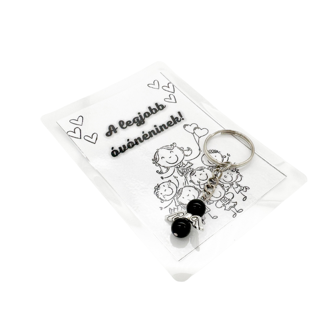 Legjobb Óvónéninek! Ajándékkártya & Ónix Angyal Kulcstartó Csomag