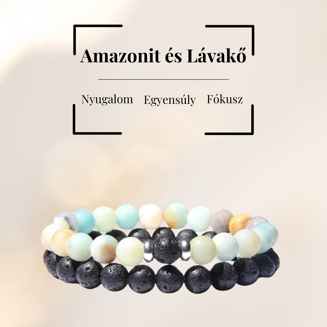 Az Amazonit és Lávakő Páros Karkötő ideális választás mindazoknak, akik egyszerre keresnek nyugalmat és védelmet a mindennapi élet kihívásai ellen. Az amazonit nyugtató ereje és a lávakő földelő energiája kombinálva segíthet egyensúlyt teremteni, erőt adni, és megtalálni a belső nyugalmat, függetlenül a külső körülményektől.