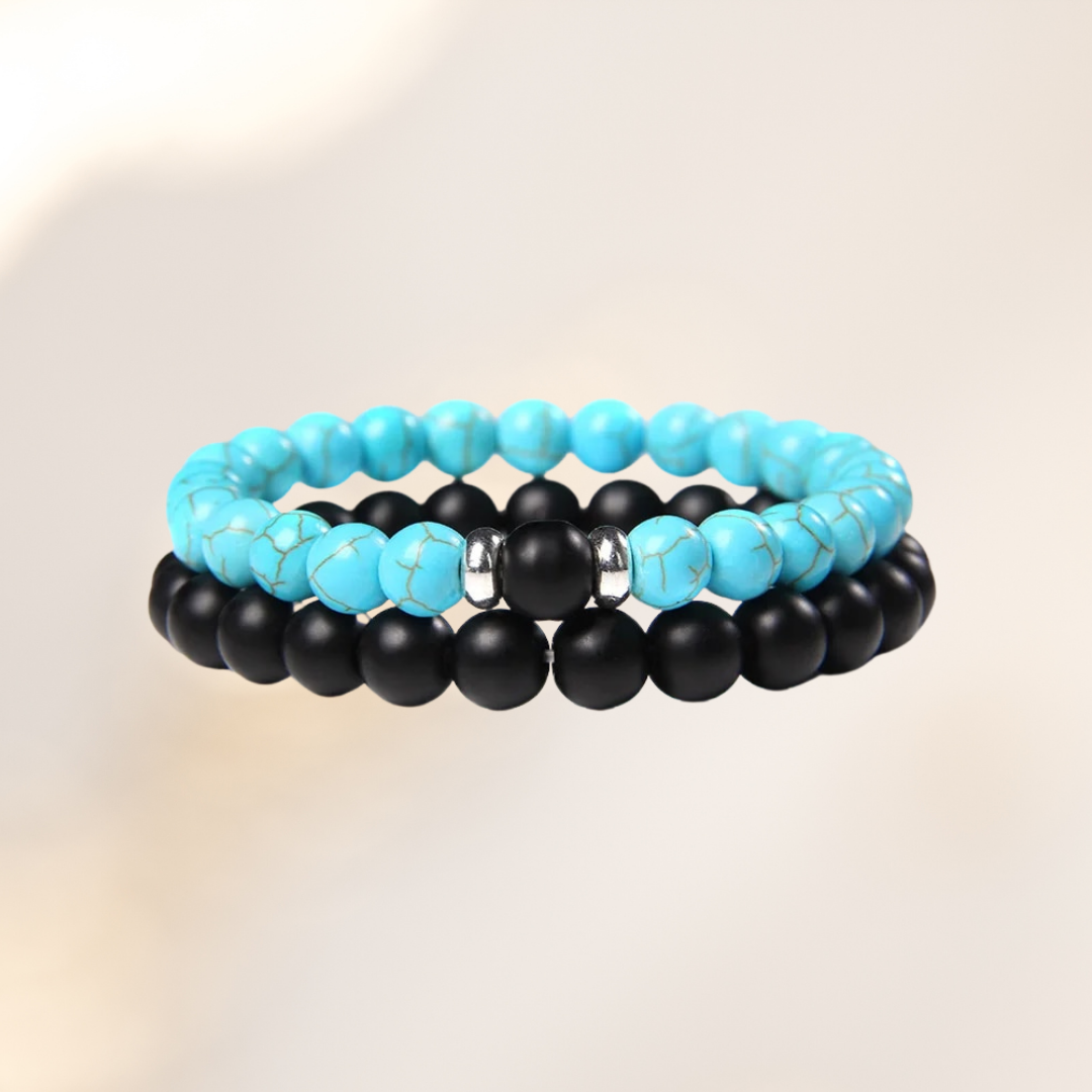 A Türkenit és Onix Páros Karkötő tökéletes kombinációja a türkenit nyugtató és az onix védelmező tulajdonságainak. Ezek a karkötők együtt segítenek abban, hogy megteremtsd a belső harmóniát, miközben megvéded magad a külső negatív hatásoktól.