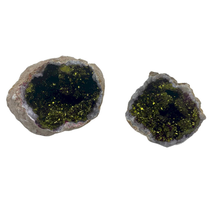 Ez a rózsaszín és arany színű kalcit geóda igazi eleganciát és finomságot hoz otthonodba. Nemcsak a szépsége miatt különleges, hanem azért is, mert erős spirituális energiákat sugároz. A rózsaszín a szeretetet és a harmóniát képviseli, míg az arany a gazdagságot és a bőséget. Ez a geóda nemcsak gyönyörű dísz, hanem segít egyensúlyban tartani a tér energiáit.