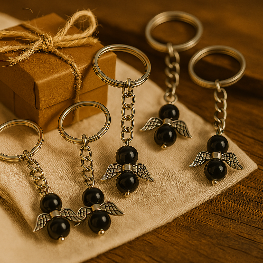 🖤 Ónix Angyalkás Kulcstartó – 5 db-os Védelmező Csomag