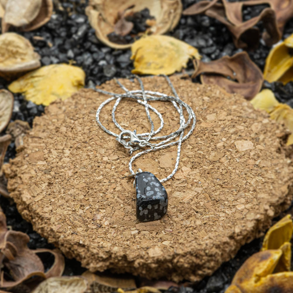 Obszidián ásvány nyaklánc ezüst lánccal
