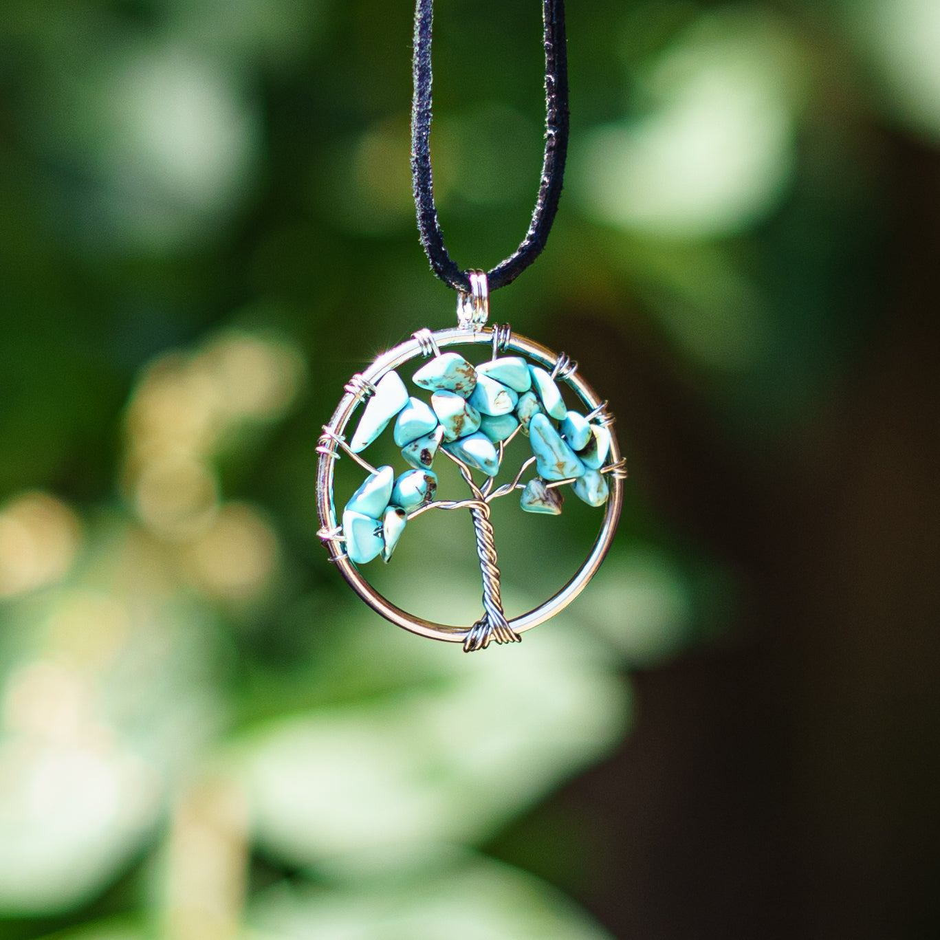 A nyakláncon az élet fája szimbólum ágain Türkenit kövek találhatóak, melyek egymást erősítve tökéletes harmóniát alkotnak.