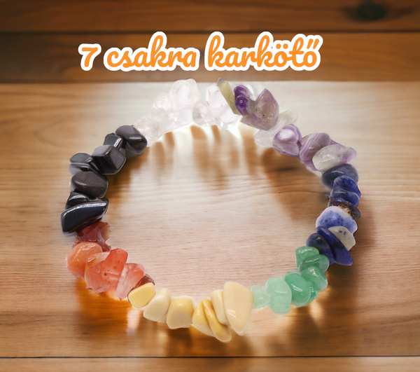 Az első csakra, a gyökércsakra energiáit a vörös jáspis képviseli, ami erőt ad és stabil alapot nyújt. A második, szakrális csakra narancssárga karneoljai ösztönzik a kreativitást és a pozitív életörömöt. A harmadik, napfonat csakra citrin kövei támogatják az önbizalmat és segítenek a céljaid elérésében. A negyedik, szívcsakra zöld aventurinjai segítik elő az önzetlen szeretetet és az empátiát. Az ötödik, torokcsakra akvamarinjai elősegítik a tiszta kommunikációt és az önkifejezést. A hatodik, harmadik szem csakra sötétkék szodalitja a belső bölcsesség és az intuíció kapuja. Végül a hetedik, korona csakra ametiszt kövei spirituális fejlődést és magasabb tudatosságot hoznak.