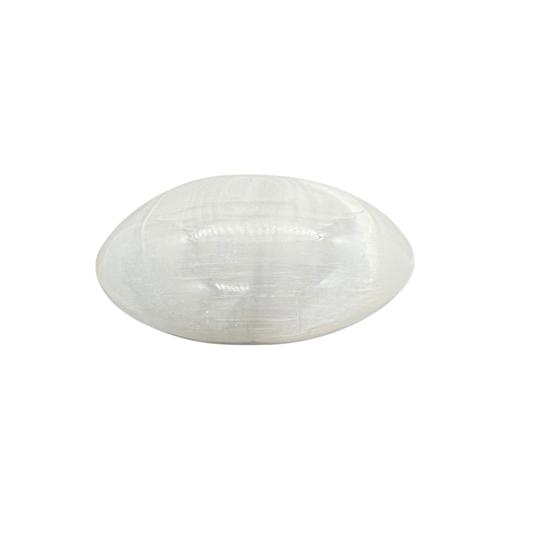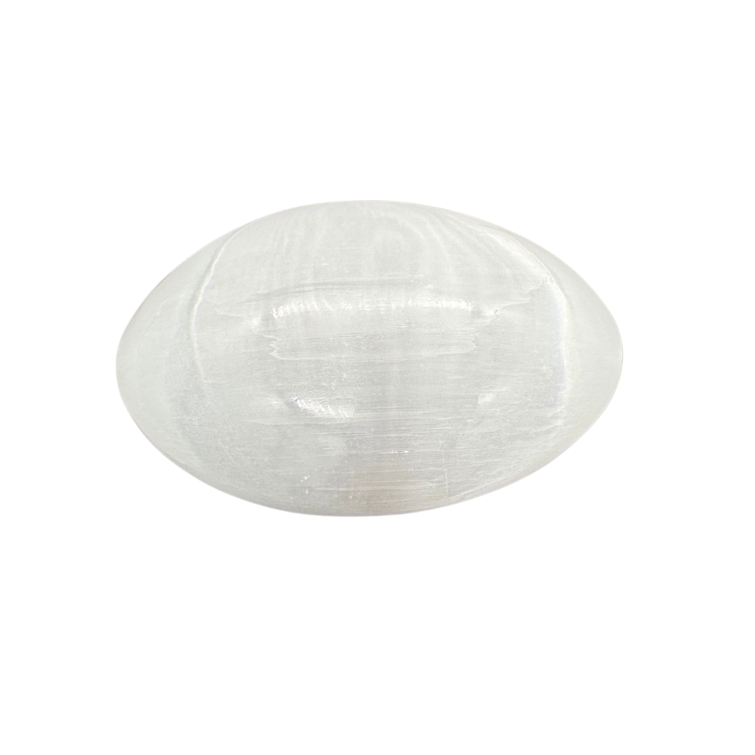A szelenit az egyik legerősebb tisztító kő, amely vágás és dörzsölés nélkül is képes eloszlatni a negatív rezgéseket. Ez a sima, lekerekített forma pedig még inkább felerősíti a nyugalmat sugárzó erejét.