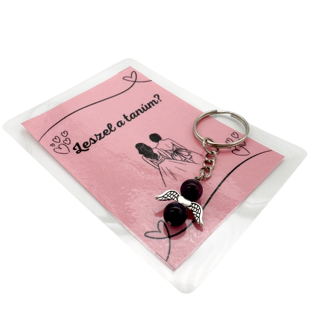 Leszel a tanúm? Rózsaszín Ajándékkártya & Ametiszt Angyal Kulcstartó Csomag