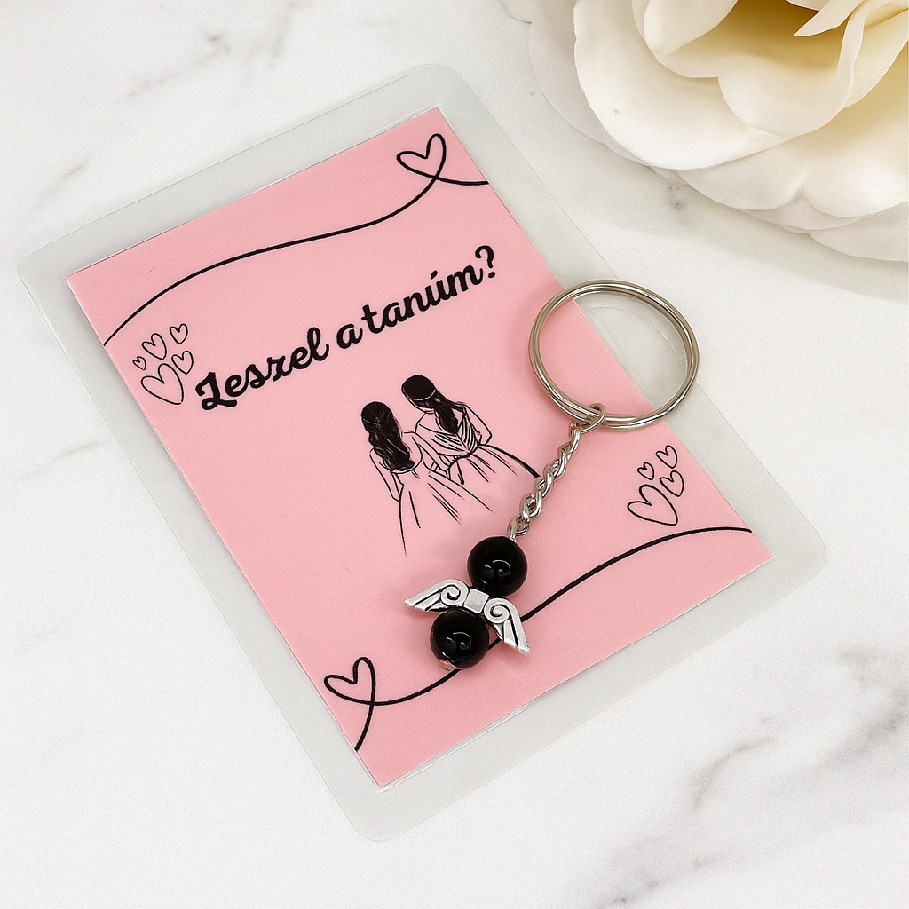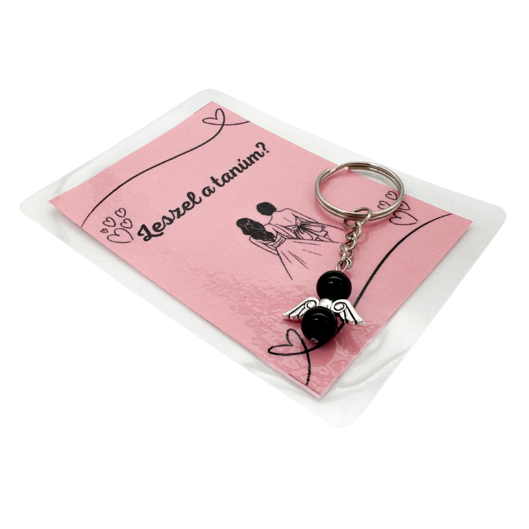 Leszel a tanúm? Rózsaszín Ajándékkártya & Ónix Angyal Kulcstartó Csomag