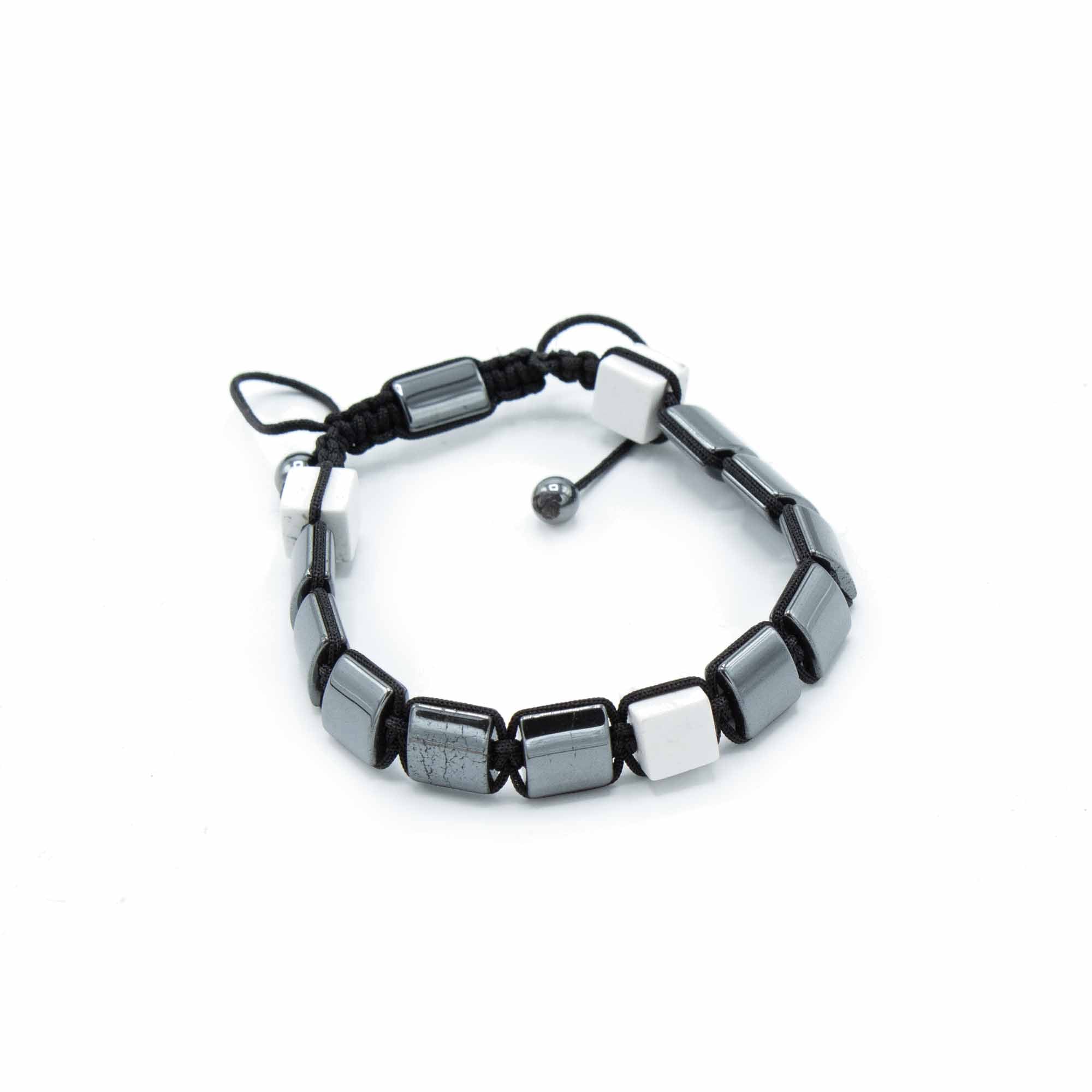 Mágneses Hematit Shamballa Karkötő - Fehér Jáspis NégyzetekMágneses Hematit Shamballa Karkötő - Fehér Jáspis Négyzetek