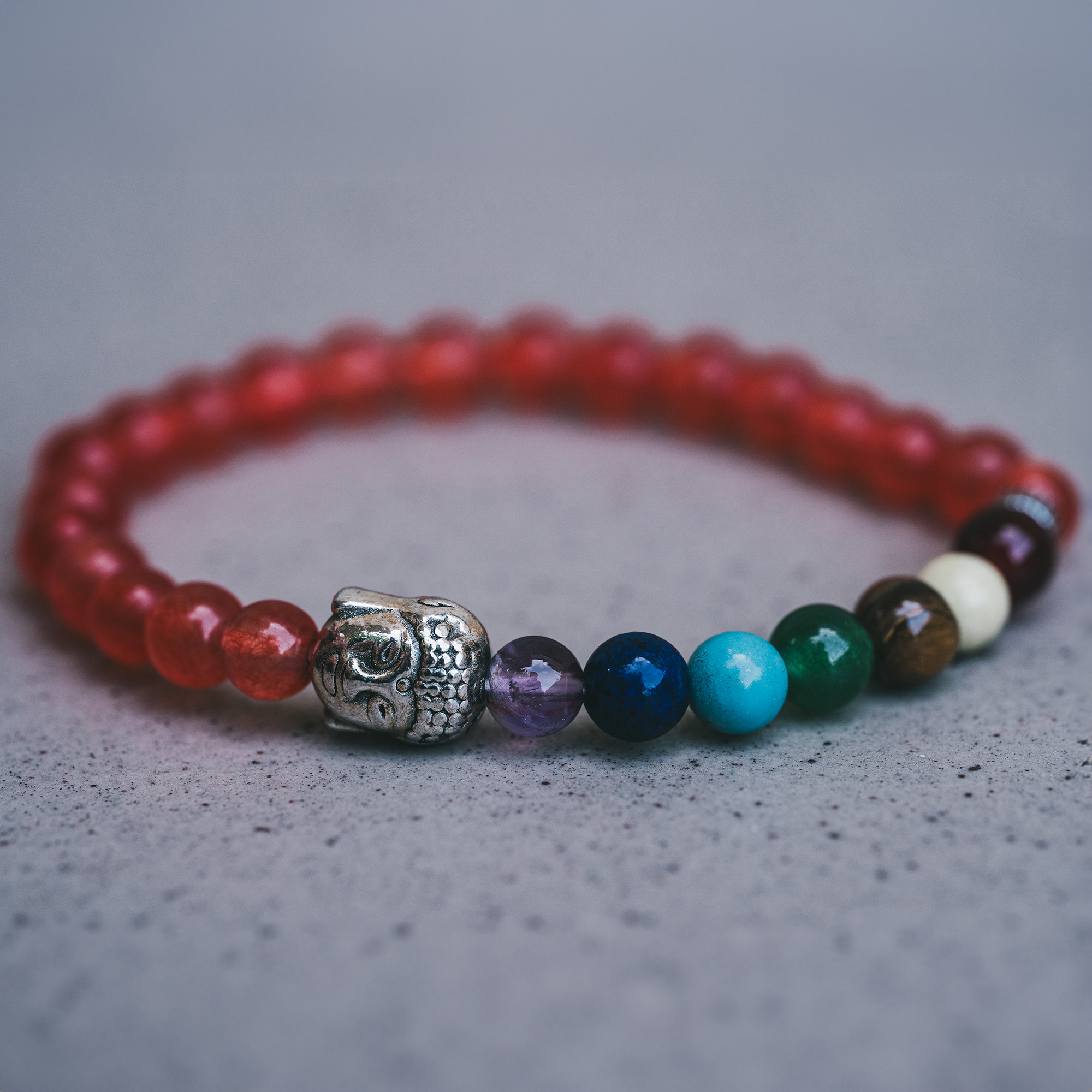 A Buddha Csakra Egyensúly Karkötő több, mint pusztán egy egyszerű kiegészítő; ez egy híd a fizikai és spirituális világ között. Kifinomult keverékét alkotja a csakra köveknek és Buddha fej nyugodt jelenlétének, ez a karkötő erőteljes energiákkal rezonál.