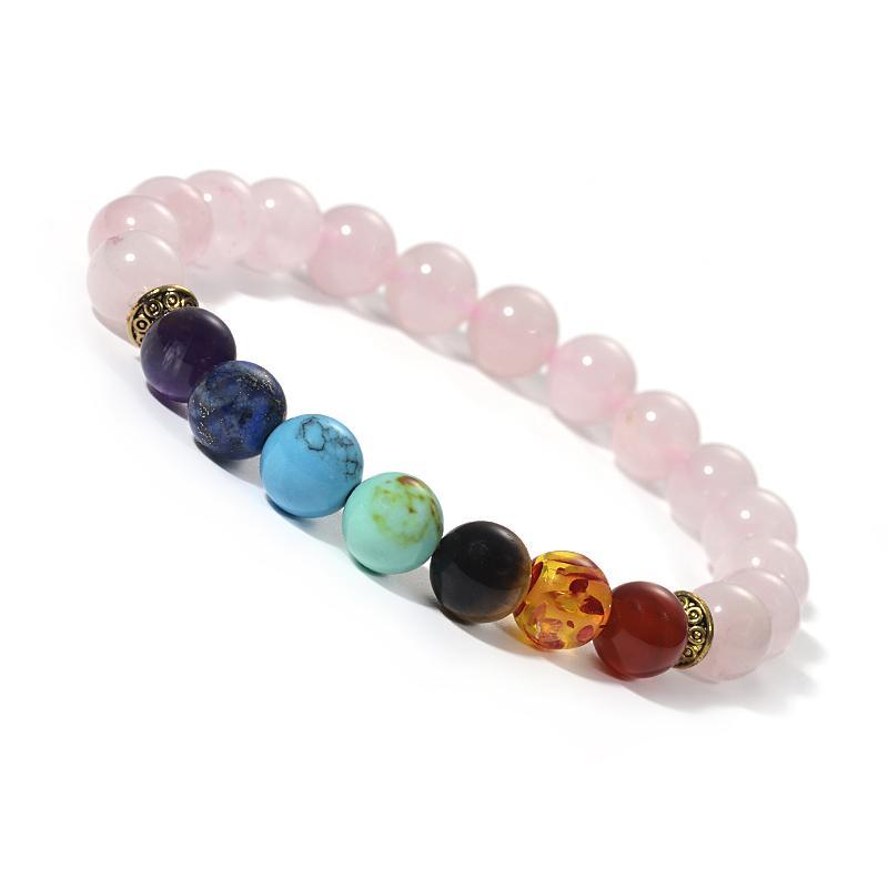 - 1 Brățară cu 7 chakre „calmantă, care eliberează stresul” cu cuarț roz