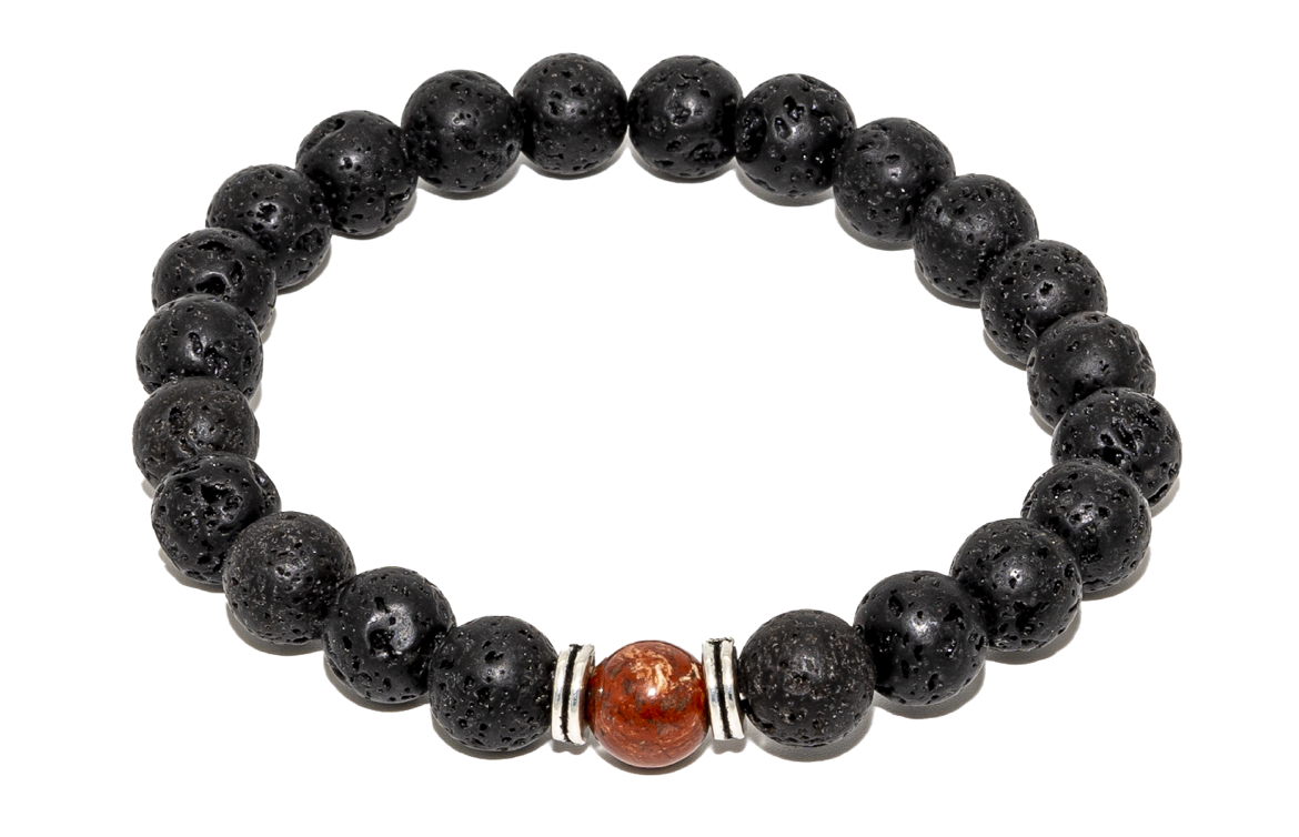 Brățară cu piatră de lavă de jasp roșu „Curaj și detoxifiere”.