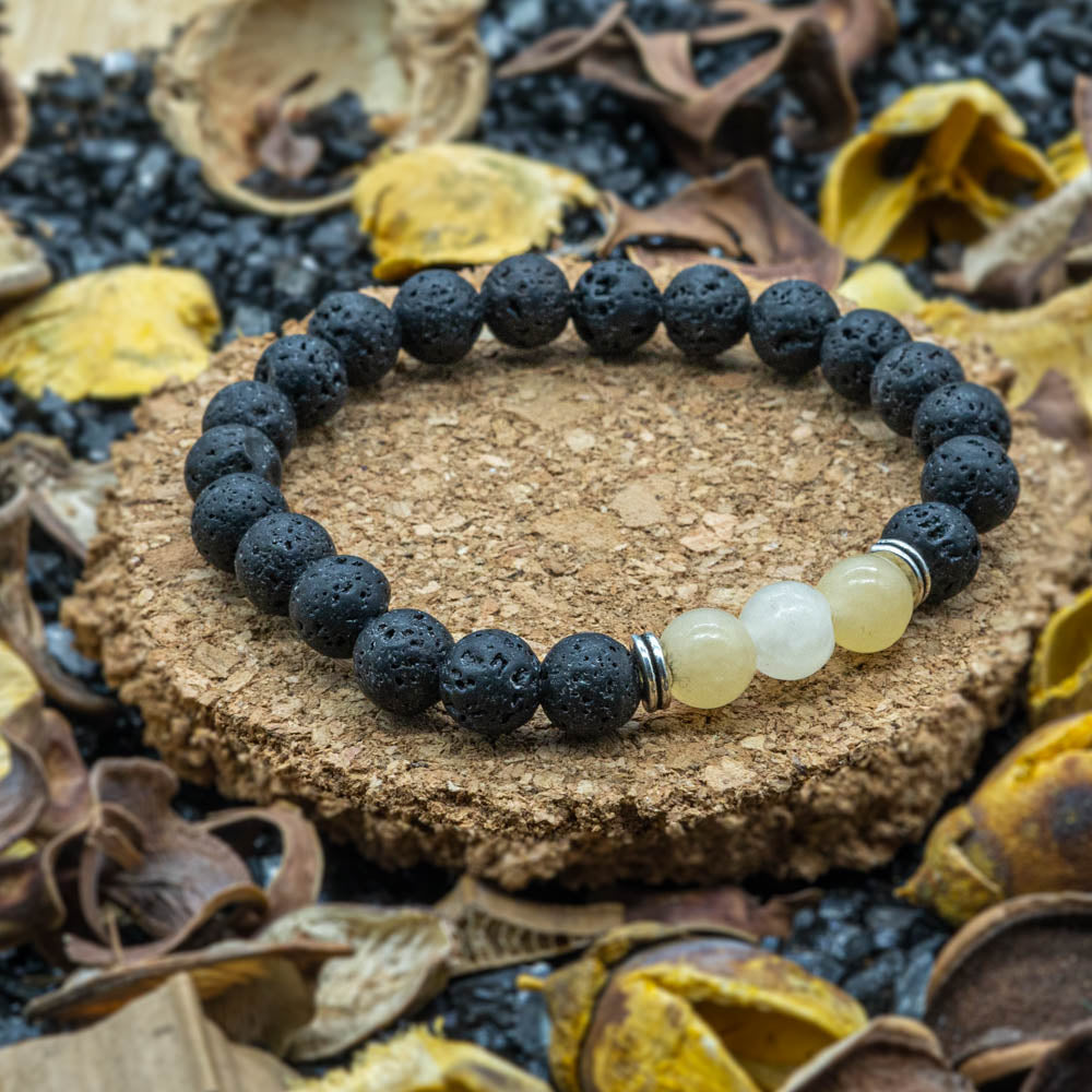 Bratara din piatra de lava cu 3 Calcite Galbene