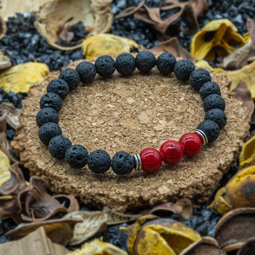 Bratara din piatra de lava cu 3 Jaspe Rosii