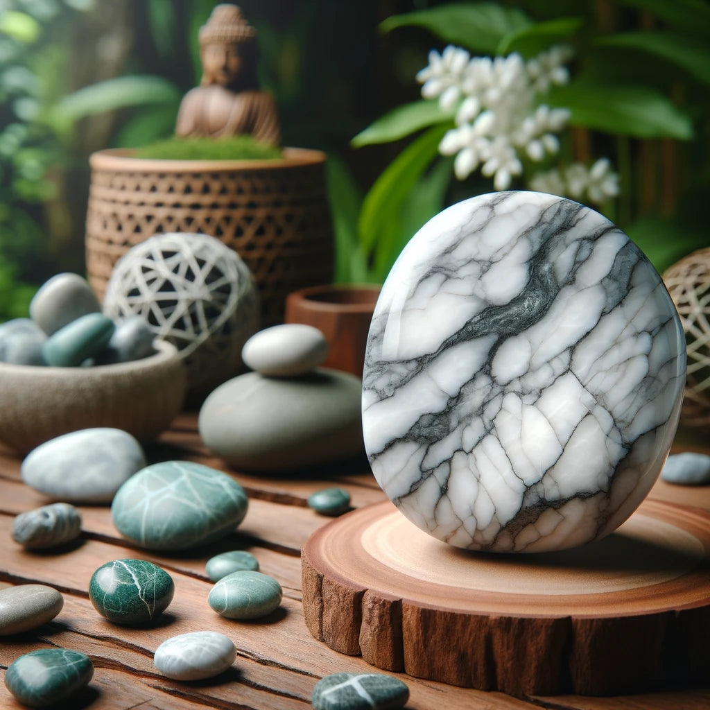Engedd, hogy ez az elegáns, mégis letisztult karkötő kísérőd legyen mindennapjaidban. A matt howlit és egyetlen, központi onix ásvány kombinációja nem csak stílusos megjelenést biztosít, hanem különleges jelentéssel is bír. A fehér színű matt howlit finom, szürke erezettel rendelkezik, amely nyugtató hatásáról ismert, segít csökkenteni a stresszt és elősegíti a nyugodt alvást. Az onix, mint erős, védelmező ásvány, segít növelni az önbizalmat és elűzi a negatív energiákat.