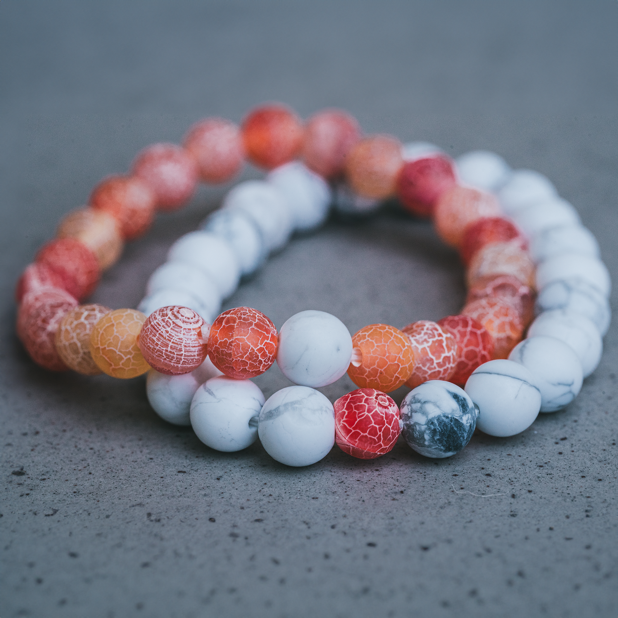 Bemutatjuk a lenyűgöző Harmonikus Kontraszt Szettet, melyben az Narancs Achát és a Howlit páratlan kombinációja szerepel. Ez a szett a kreativitás, az egyensúly és a tisztaság hatásait tökéletes harmóniában testesíti meg.