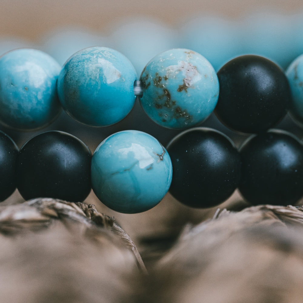 Fedezd fel az egység szépségét, miközben megtapasztalod a kék Howlite és a fekete Onyx szinergiájának harmóniáját. A kölcsönös energiáik egységbe forrnak, szimbolizálva minden dolog összekapcsoltságát.