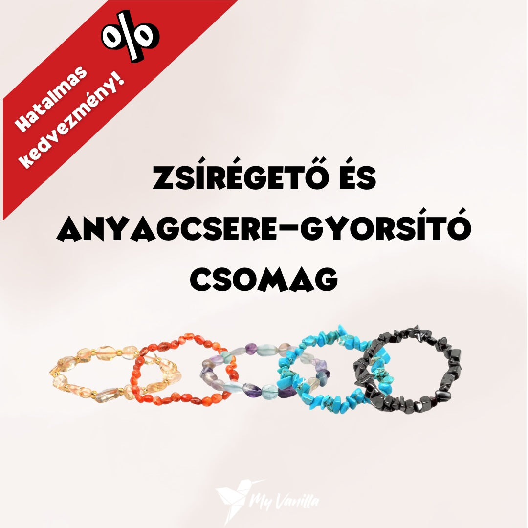 Szeretnéd fokozni az anyagcserédet, támogatni a zsírégetést, és közben megőrizni energiádat és kiegyensúlyozottságodat? A Zsírégető és Anyagcsere-gyorsító Csomag tökéletes választás számodra! Ez az 5 különleges ásványból álló karkötőcsomag természetes támogatást nyújt a fogyókúrához, segít a méregtelenítésben, az energiaszint emelésében és az állóképesség fokozásában – hogy könnyebben elérhesd céljaidat!