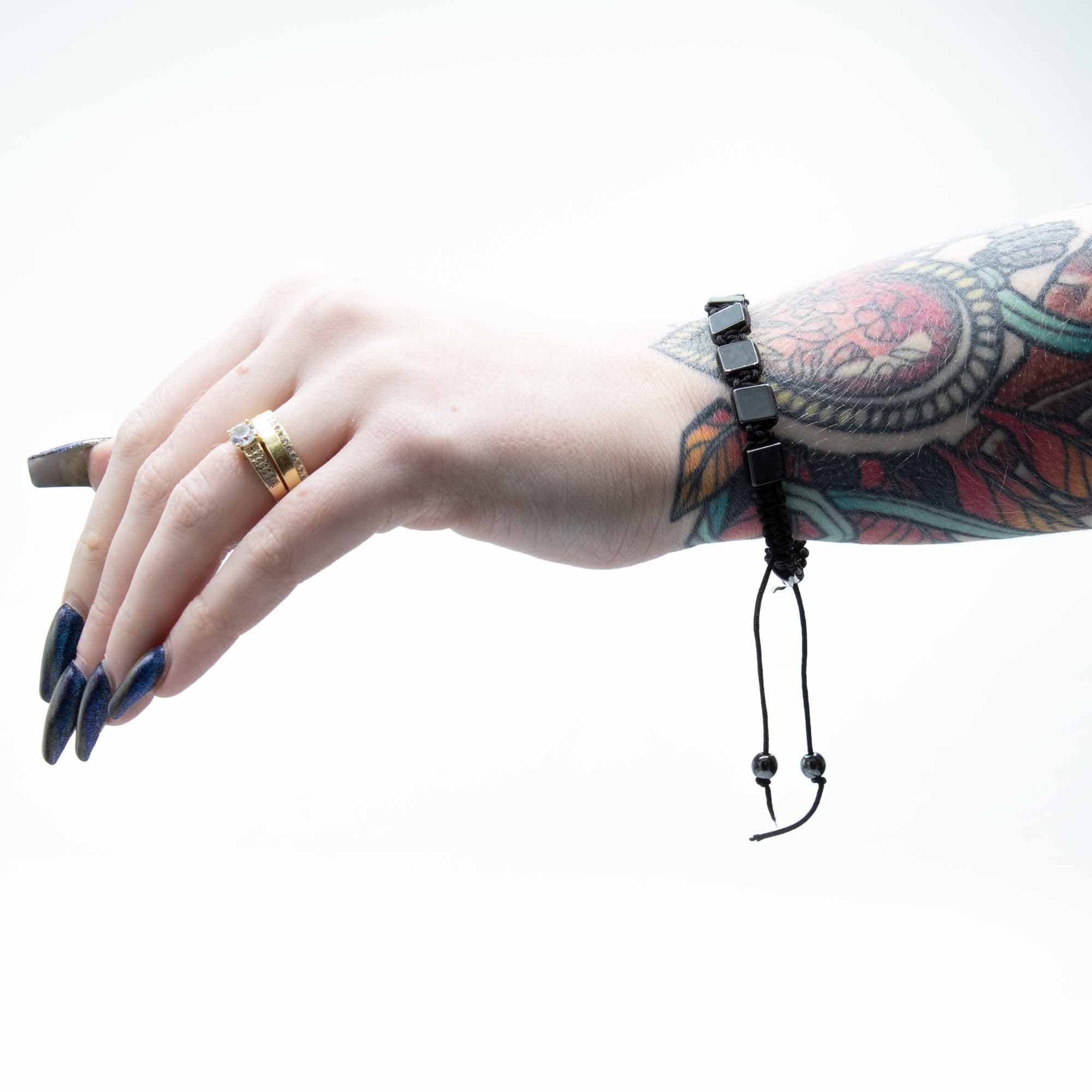 Mágneses Hematit Shamballa Karkötő - Lapos Négyzetek