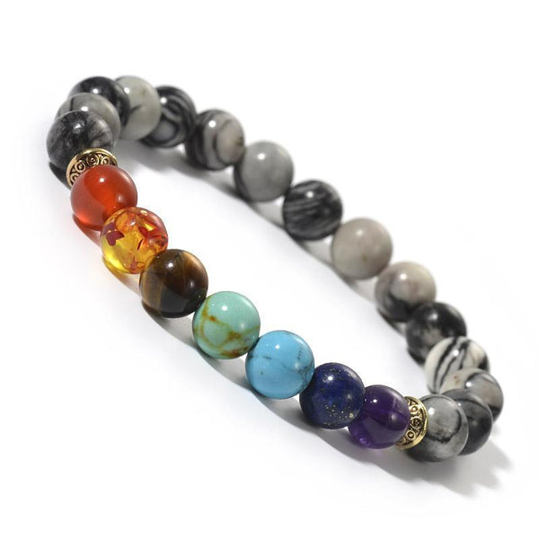 Brățara noastră conține 7 pietre prețioase unice și 15 jaspi negre , care se întăresc reciproc pentru a forma o armonie perfectă.